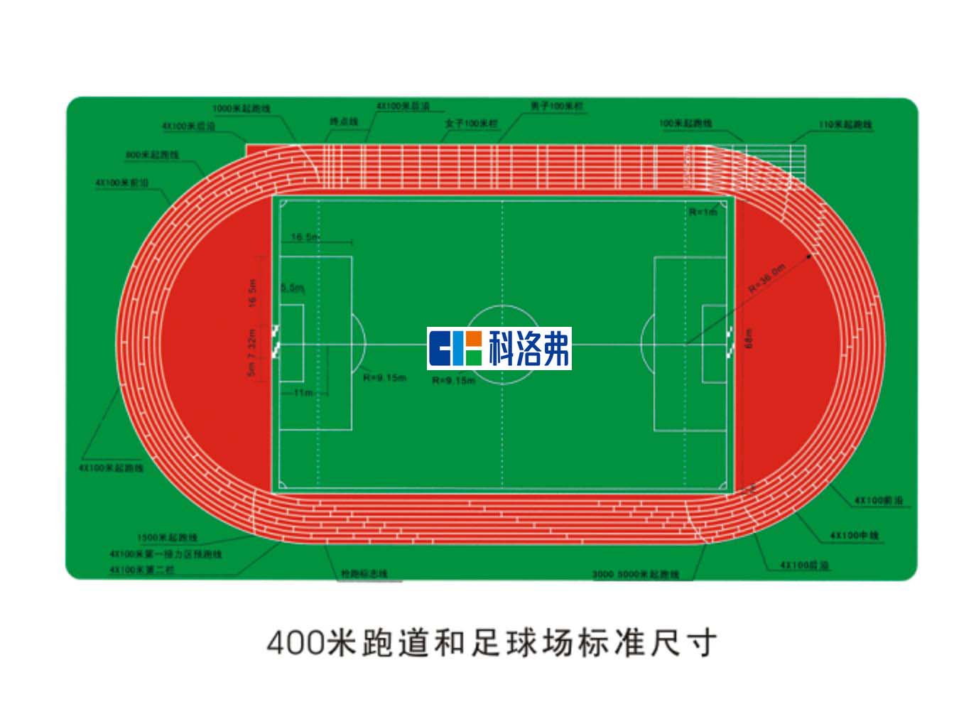 36、足球場人造草坪常用高度為50毫米,規(guī)格沒卷寬4米,人造草坪填料,目前一般有兩種,一種是石英砂,一種是黑色橡膠顆粒填充,高度為草高的70%即35毫米。37、 標(biāo)準(zhǔn)400米田徑場地,橢圓形跑道的彎道半徑應(yīng)為36.5米(國際田聯(lián)標(biāo)準(zhǔn)),兩個半圓中心點距離為84.39米,這樣內(nèi)圓長為398.12米,由內(nèi)沿向外30厘米,測量場地長,應(yīng)為400米。