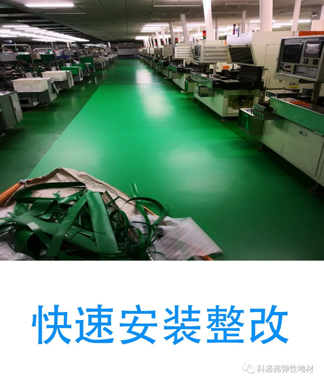 7 成品安裝:(卷材,非液態(tài)材料,直接鋪貼,裝完即可使用),施工簡易,維修相當簡單,可在不影響客戶廠房正常生產(chǎn)及使用的情況下進行安裝及維修。