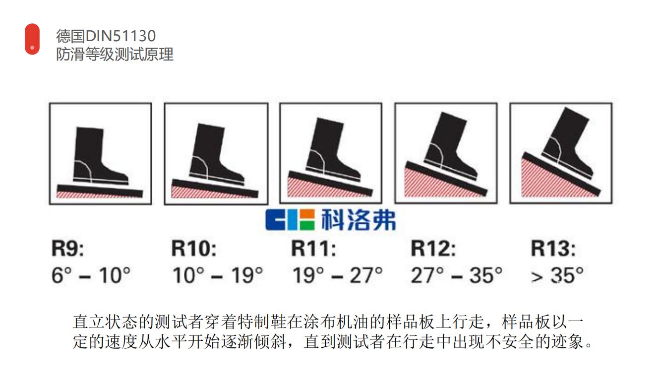 采用德國防滑標(biāo)準(zhǔn)生產(chǎn),經(jīng)德國油濕地面防滑標(biāo)準(zhǔn)DIN51130測試達(dá)R10防滑等級
