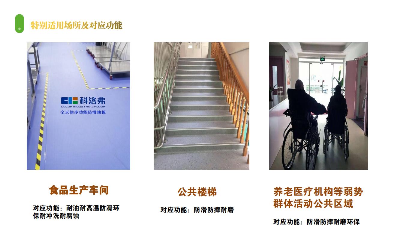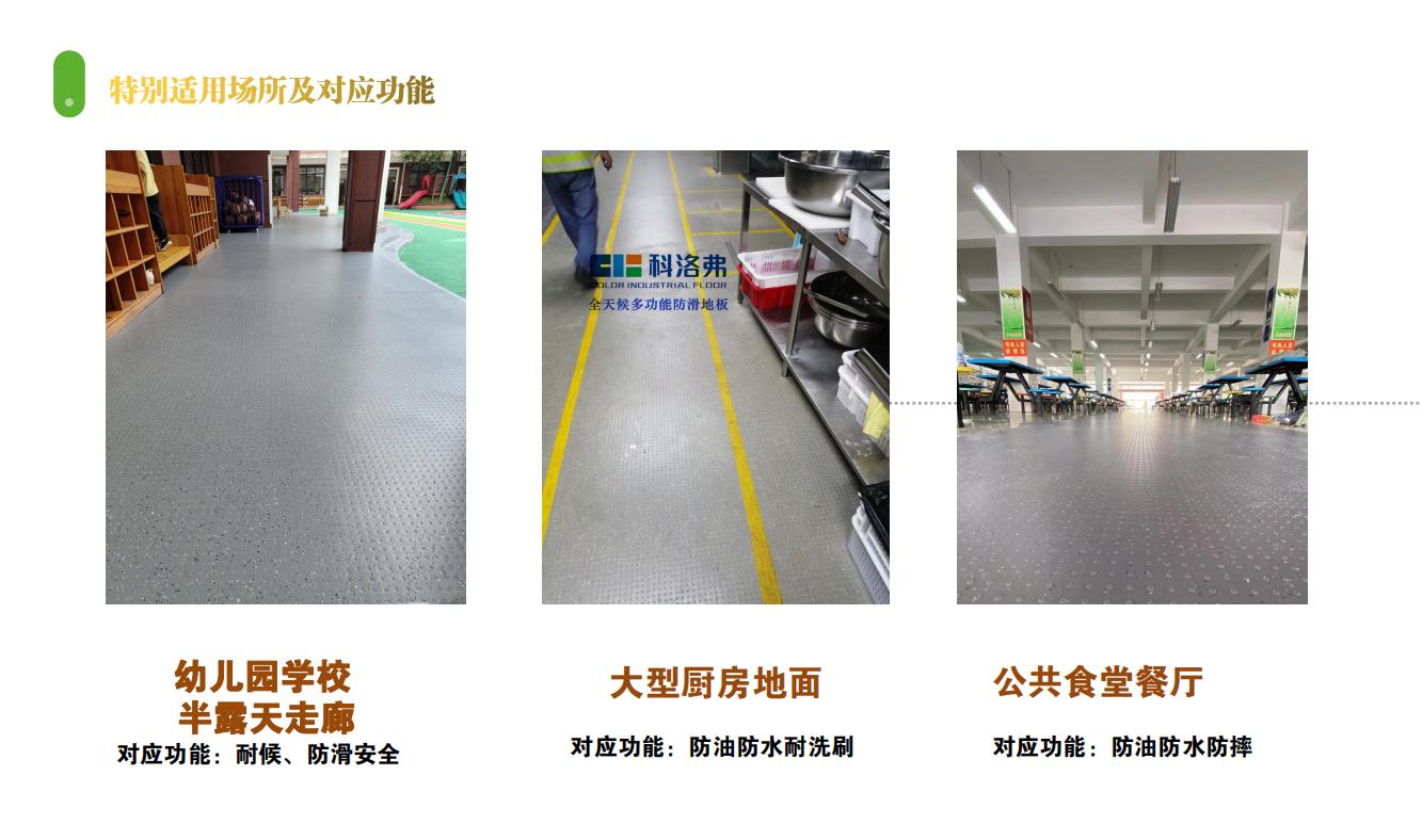 室內(nèi)室外通用,特殊抗老化成份及配方保證防滑地板在室外使用時的使用壽命